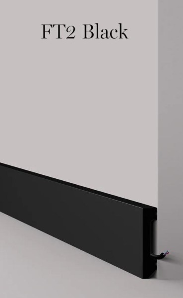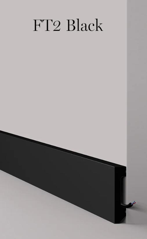 Kubiczny, solidny i wszechstronny. FT2 BLACK łączy siłę minimalistycznego designu z nowoczesnym akcentem. Oczywiście, wszystko w czarnym wykończeniu. Prosty i pewny siebie design sprawia, że ten element jest odpowiedni do każdego pomieszczenia i do każdego stylu wnętrza. Jako elegancki i smukły element, czarny cokół może pomóc w tworzeniu silnych kontrastów z jaśniejszymi ścianami lub wprowadzić subtelny balans w ciemniejszym otoczeniu. Czarny dyfuzor jest prawie niewidoczny, gdy światła LED są wyłączone, a gdy są włączone, emituje zupełnie inny odcień światła. Absorbując więcej światła niż jego biała wersja, czarny dyfuzor emituje jednolite, miękkie światło, unikając konfliktu jasności z czarnymi profilami.