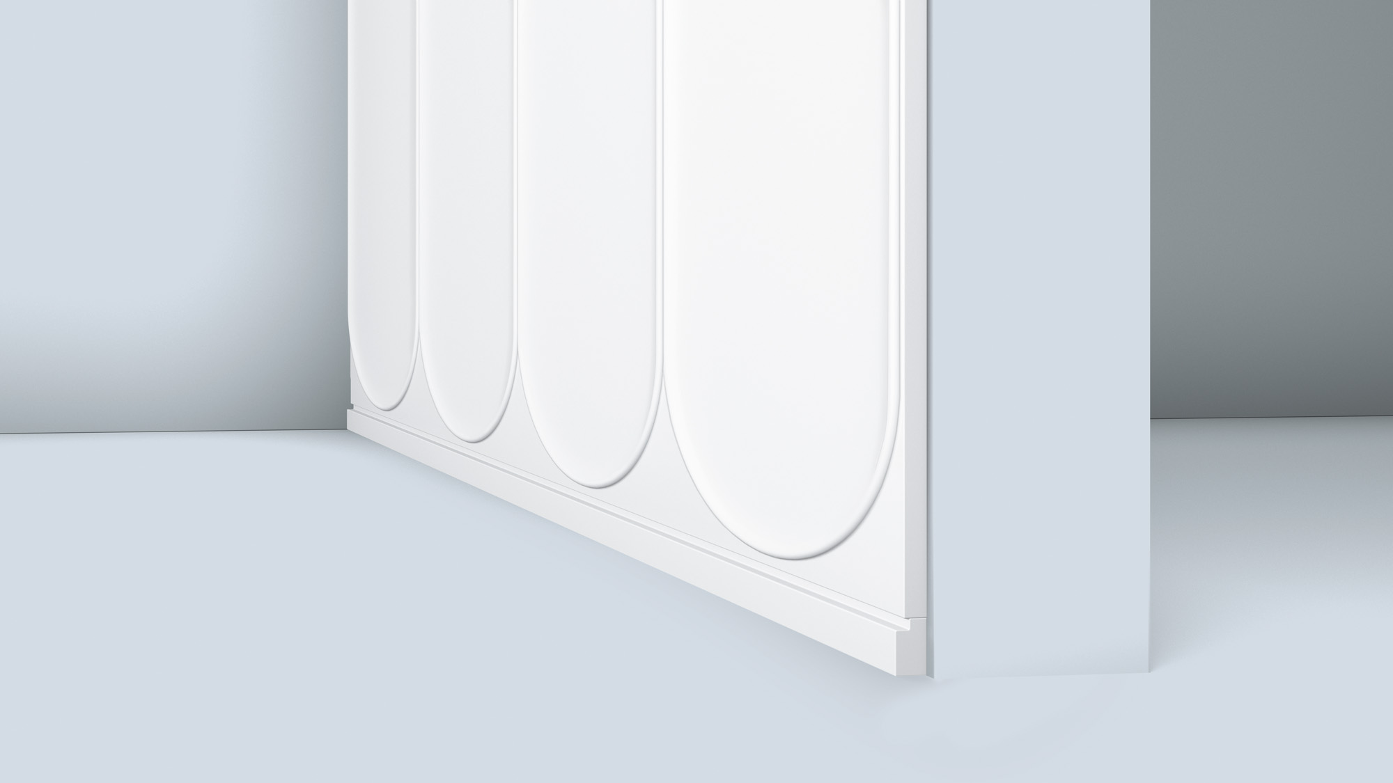 Wysokiej jakości nowoczesna, minimalistyczna listwa przypodłogowa pozwalająca w szybki sposób efektownie wykończyć wnętrze na styku ściany i podłogi maskujac nierówności i dylatację. Ten model jest przeznaczony również jako listwa kończąca, przypodłogowa do paneli 3D: Canelé S, Canelé L, Dorique czy Scuretto.