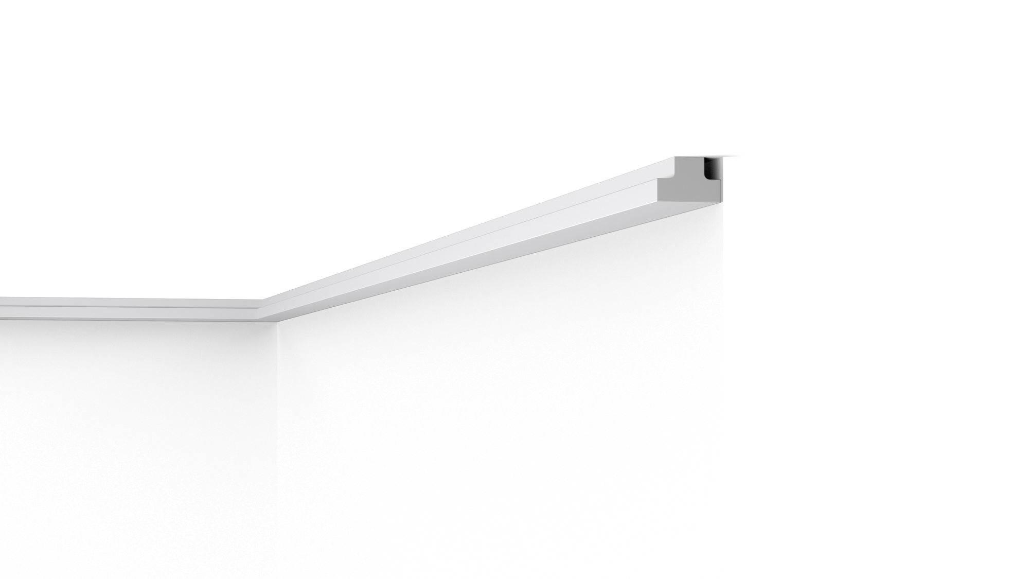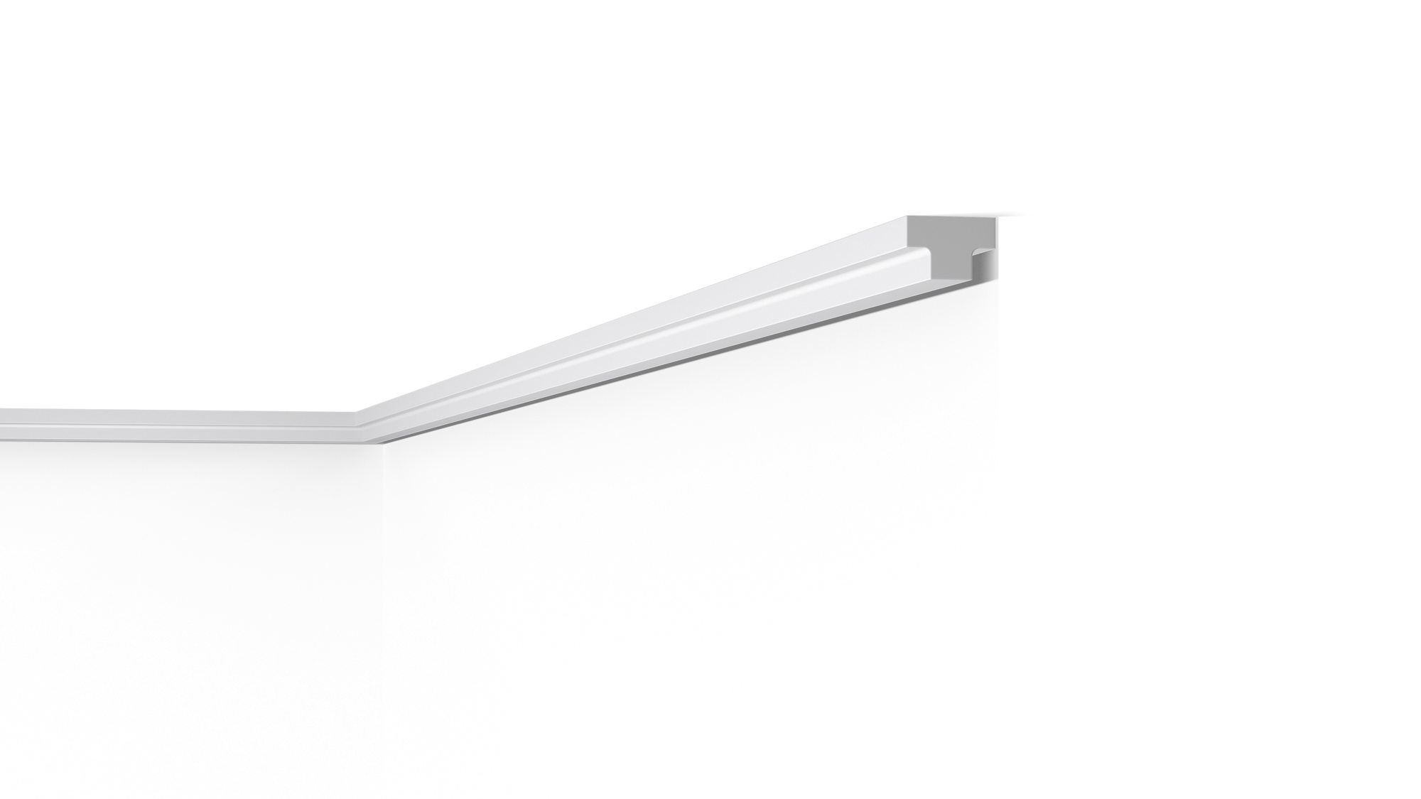 Miękki, minimalistyczny gzyms o idealnie gładkiej powierzchni pozwoli, niewielkim nakładem środków, ukryć drobne niedoskonałości na styku ściany i sufitu.