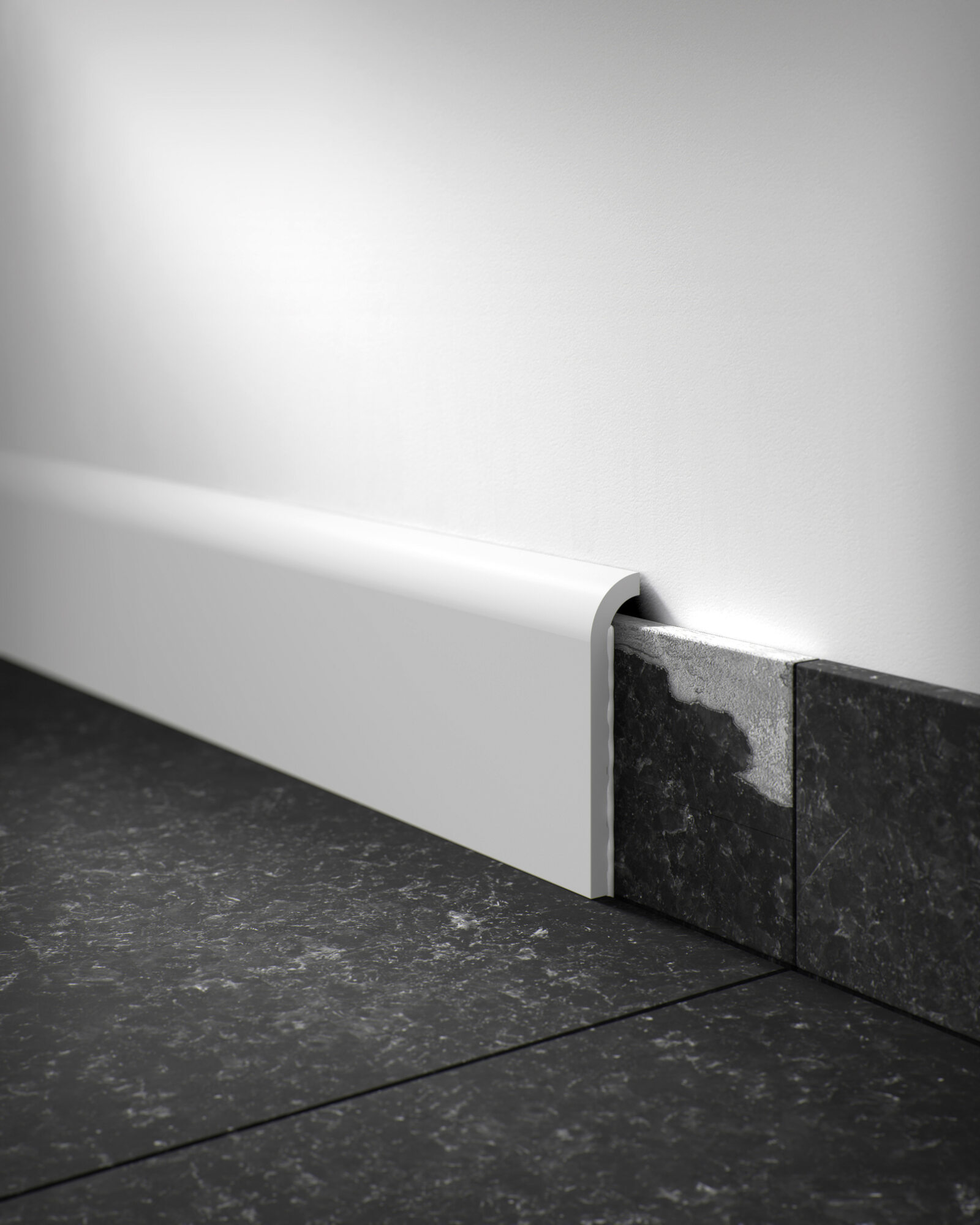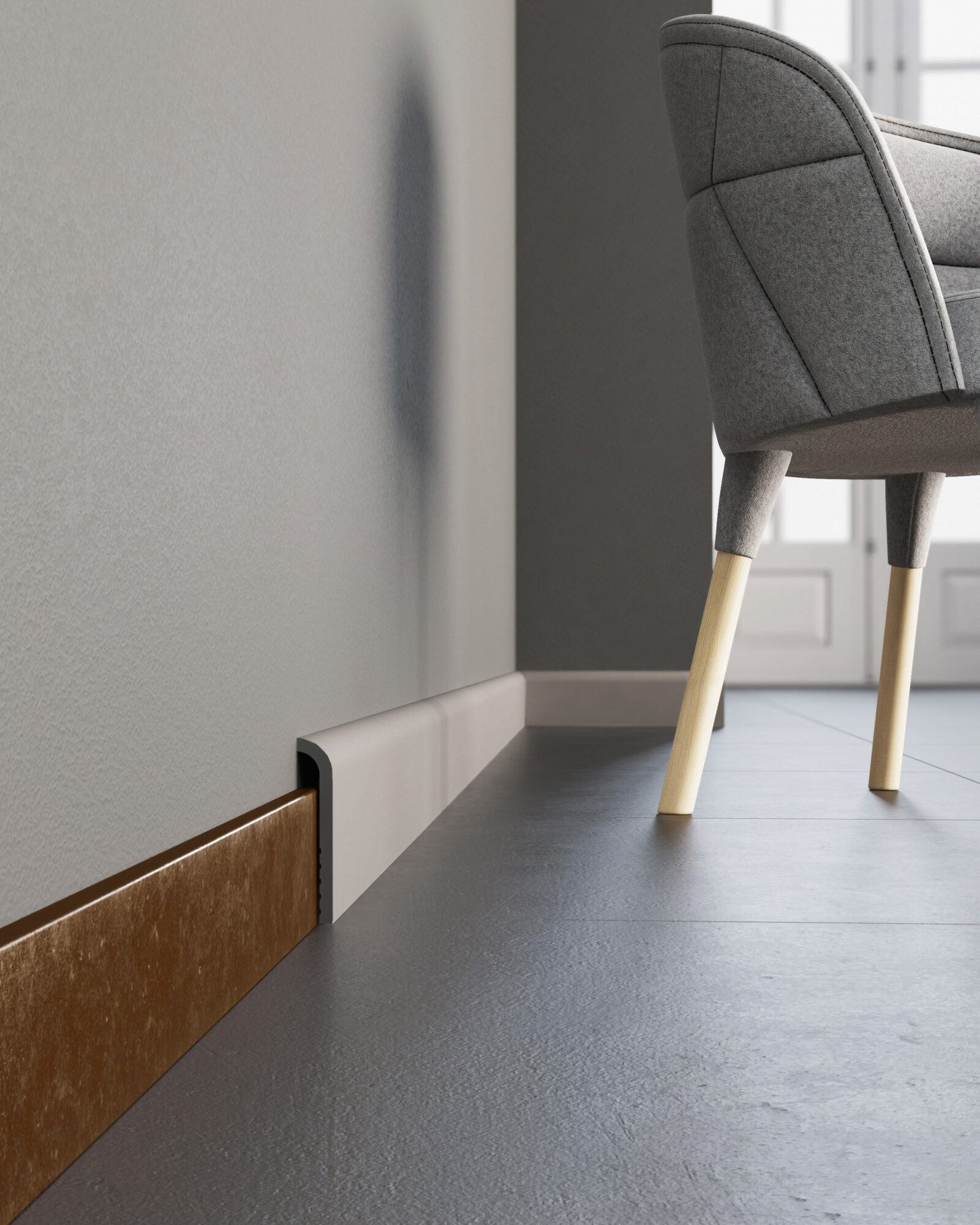 Listwa renowacyjna służy do maskowania już istniejących cokołów, bez konieczności ich demontażu.