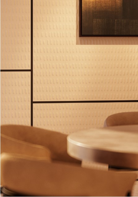 Uznany projektant Bertrand Lejoly, twórca kolekcji, czerpał inspirację bezpośrednio z natury. Nowe panele przeniosą do Twoich wnętrz: siłę ukrytą w strukturze skał, subtelność poruszeń wiatru i niepowtarzalność śladów na piasku.