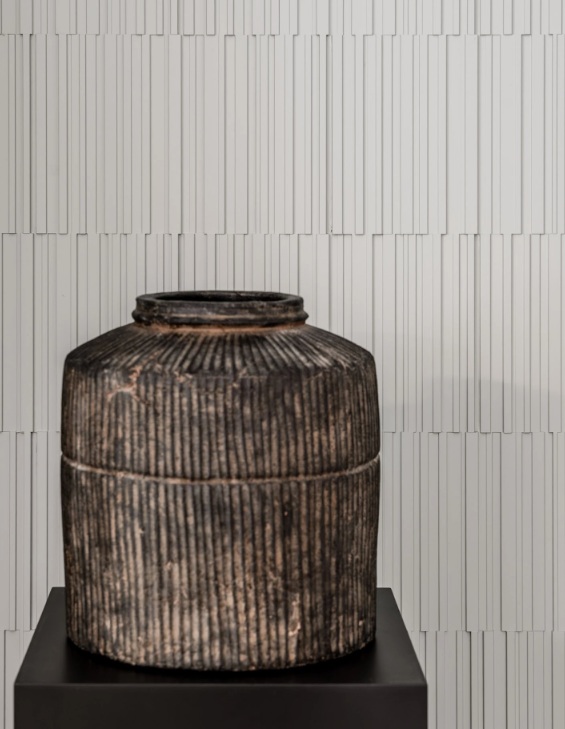 Poniżej pomysł na wydzielenie strefy umywalek w dużym pokoju kąpielowym za pomocą paneli 3D Canele S.