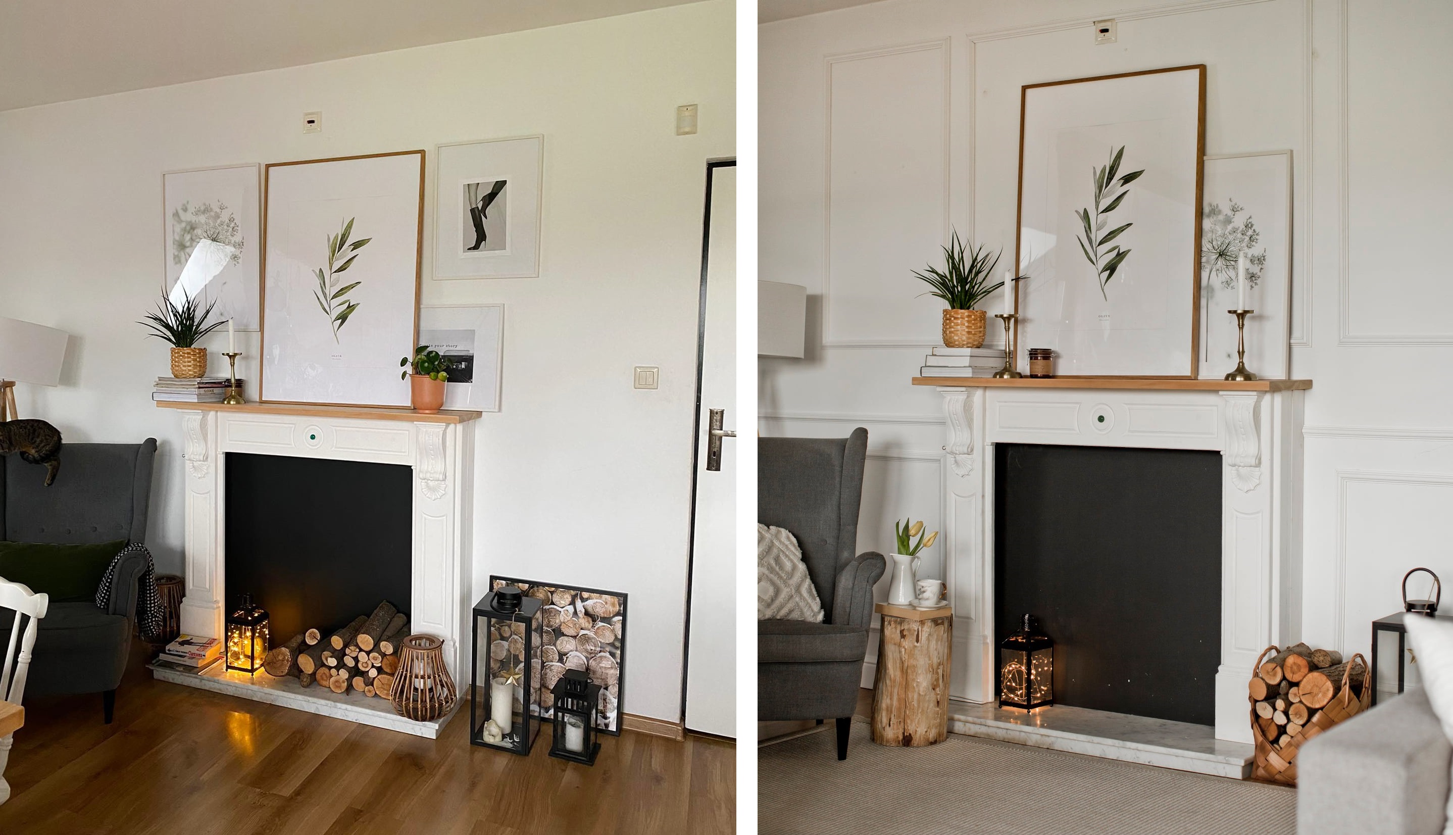 Kasia, która jest autorką poniższej metamorfozy, zapragnęła by przestrzeń nad kominkiem była bardziej spokojna i jasna, ale jednocześnie by pozostała zaakcentowana i ciekawa. Do wykonania metamorfozy wybrała listwy ścienne T40, które przykleiła pionowo na "drewnianej" ścianie. Tak powstała jasna i elegancka strefa, która idealnie komponuje się z pozostałym wyposażeniem wnętrza. Jeden zmieniony element a wnętrze zyskało nową świeżość i energię.