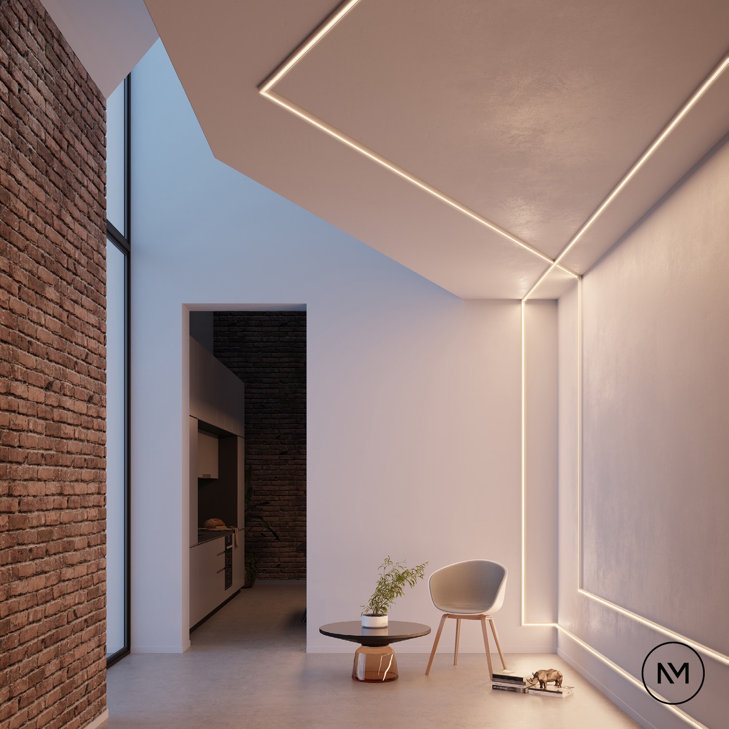 Z kolei, do stworzenia minimalistycznej, ale efektownej, dekoracji wnętrza odpowiednie będą listwy przyścienne (z podświetleniem lub bez). Można poprowadzić je na wiele ciekawych sposobów. Poniżej użyty model: IL12.