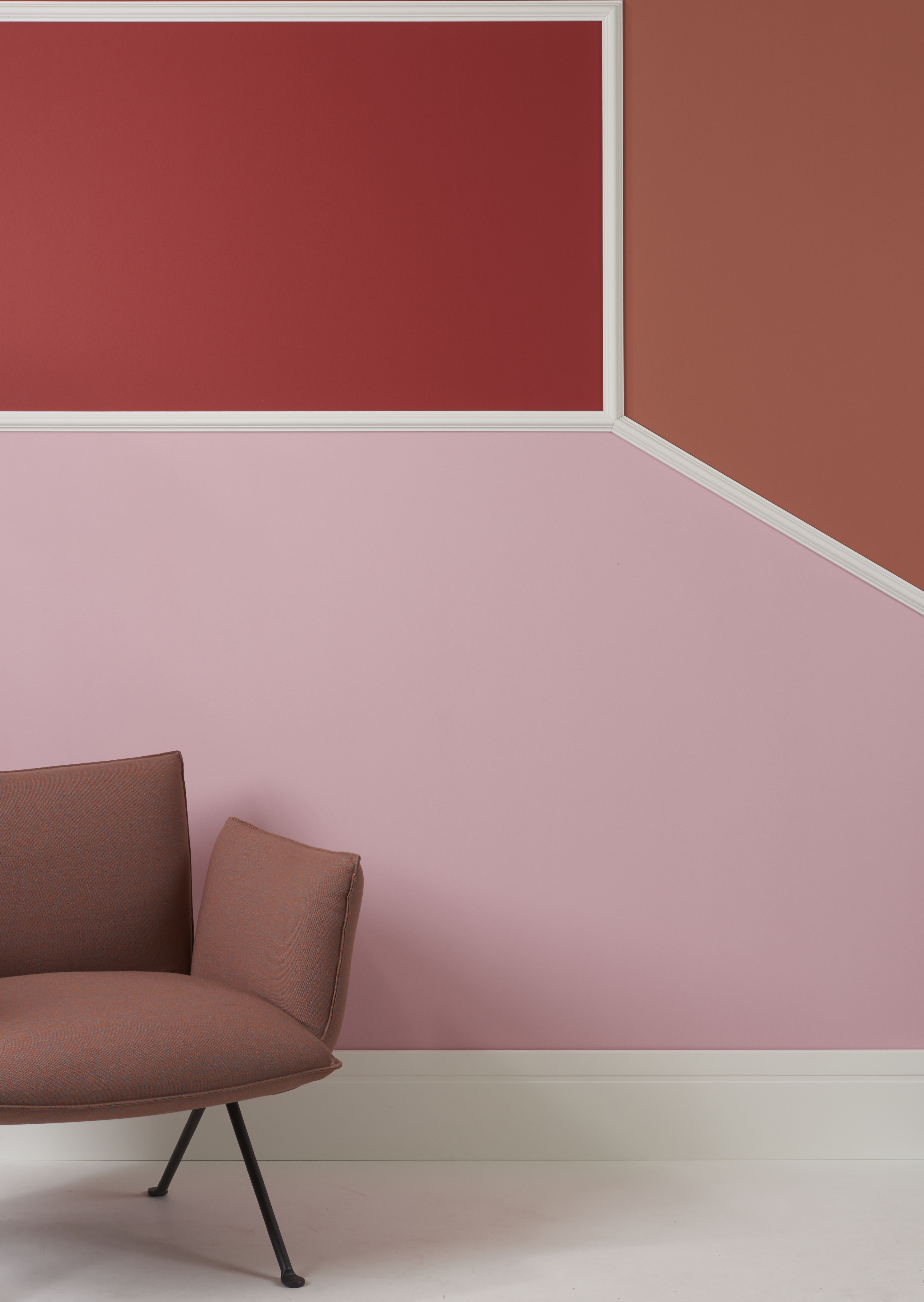 Charakterystycznym smaczkiem we wnętrzu urządzonym w stylu avant basic będzie kompozycja listew pomalowanych na mocne kolory.