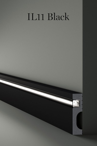 Dzięki swoim geometrycznym kształtom, ostrych krawędziach i czarnemu wykończeniu aż do rdzenia, IL11 BLACK wyraża stabilność i nowoczesność w designie cokołów. Wbudowany w bok cokołu dyfuzor łączy zarówno funkcjonalność, jak i dekoracyjny charakter, pozwalając na różne efekty świetlne w zależności od wybranego sposobu montażu. Światło rozproszone przez czarny dyfuzor powiększa przestrzeń, dodając jej ciepła. Grając kolorami i światłem, wnętrza mogą stać się prawie iluzją optyczną.