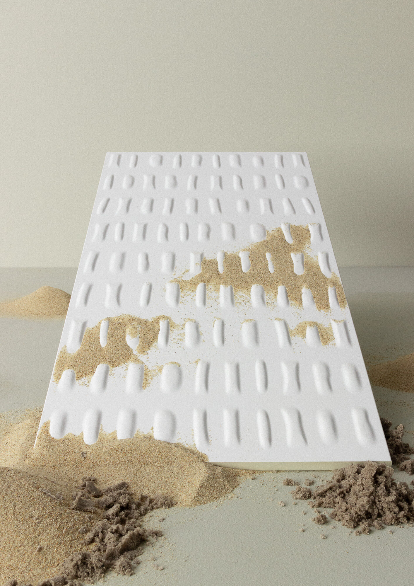 Uznany projektant Bertrand Lejoly, twórca kolekcji, czerpał inspirację bezpośrednio z natury. Nowe panele przeniosą do Twoich wnętrz: siłę ukrytą w strukturze skał, subtelność poruszeń wiatru i niepowtarzalność śladów na piasku.