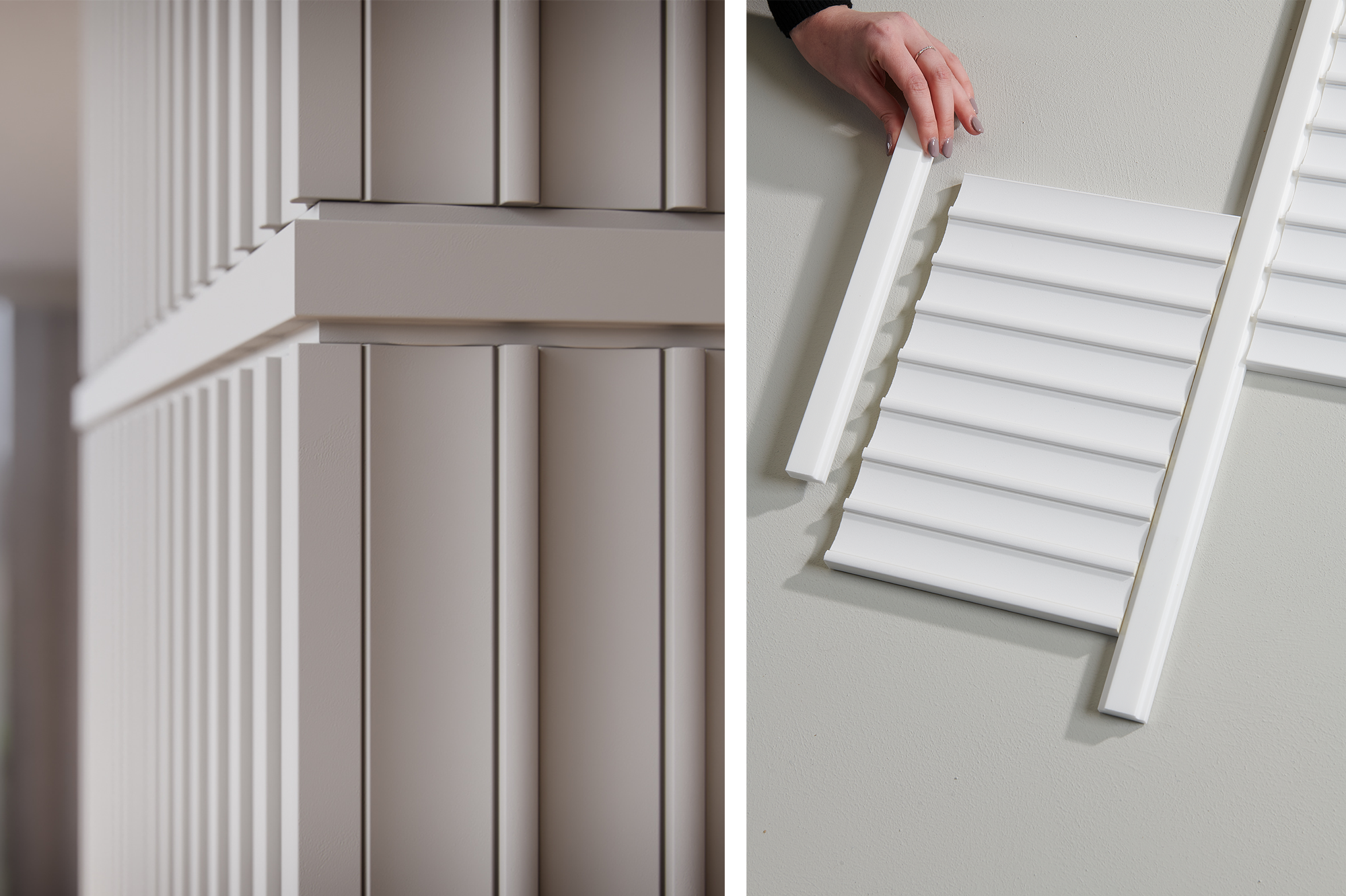Stworzony przez projektanta Bertranda Lejoly'ego panel ścienny DORIQUE to reinterpretacja klasycznego wzoru, który idealnie pasuje do współczesnych wnętrz. Paski światła i cienia na przemian wzdłuż pionowych linii tworzą grę kontrastów i wyrafinowaną geometrię. Ten panel 3D może być używany w połączeniu z profilami wykończeniowymi FL11 i WL10, a także panelami ściennymi CANELÉ S i L, aby stworzyć niepowtarzalną kompozycję.