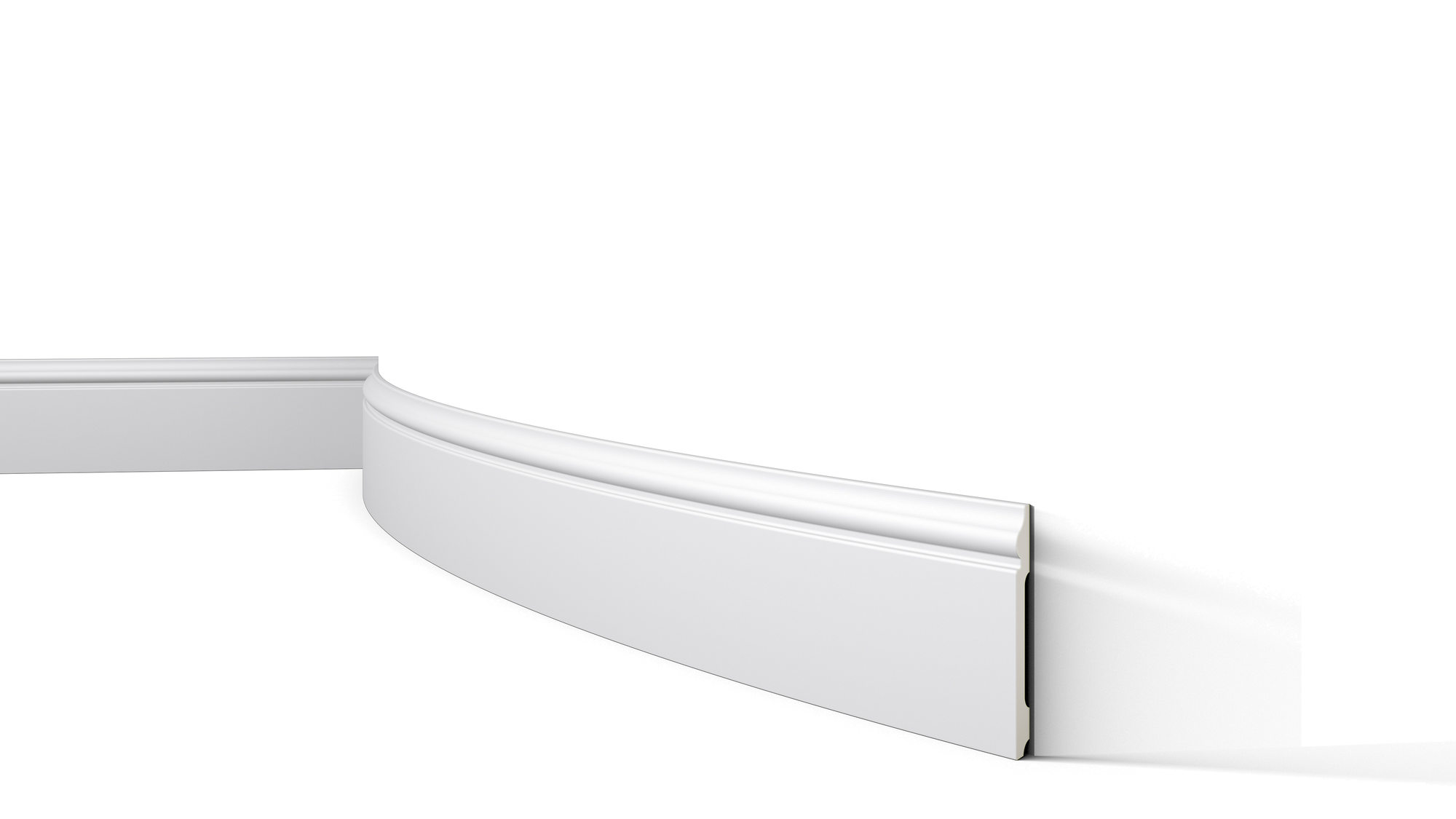 Giętka, dekoracyjna listwa przypodłogowa. Profile z serii FLEX są elastyczne, dzięki temu można je wyginać i dopasowywać do różnych, nietypowych kształtów powierzchni. Znajdują zastosowanie na łukach ścian oraz jako opaski kolumn. Każda listwa miękka posiada swój odpowiednik w wersji twardej. Listwa jest gotowa do montażu.