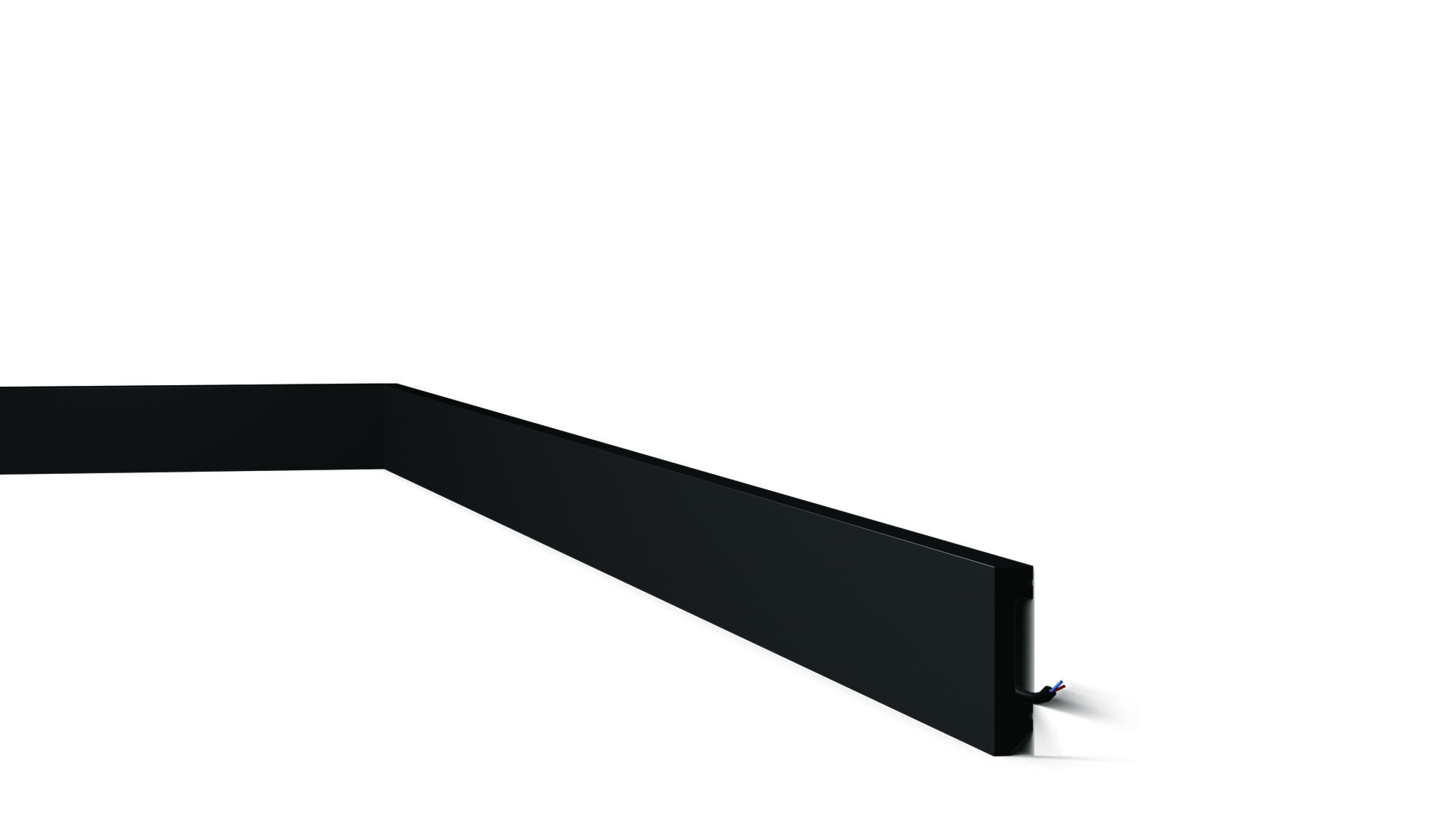 Wysokiej jakości nowoczesna listwa przypodłogowa w kolorze czarnym (RAL7021) pozwalająca w szybki sposób efektownie wykończyć wnętrze na styku ściany i podłogi maskujac nierówności i ukrywając przewody elektryczne.