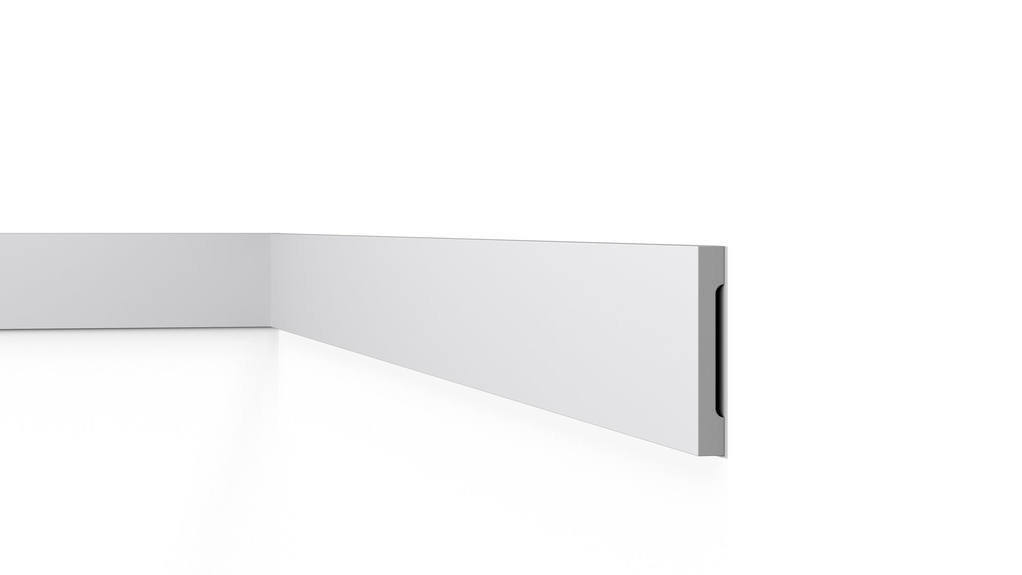 Wysokiej jakości dekoracyjna listwa przypodłogowa pozwalająca w szybki sposób efektownie wykończyć wnętrze na styku ściany i podłogi maskujac nierówności i ukrywając przewody elektryczne.