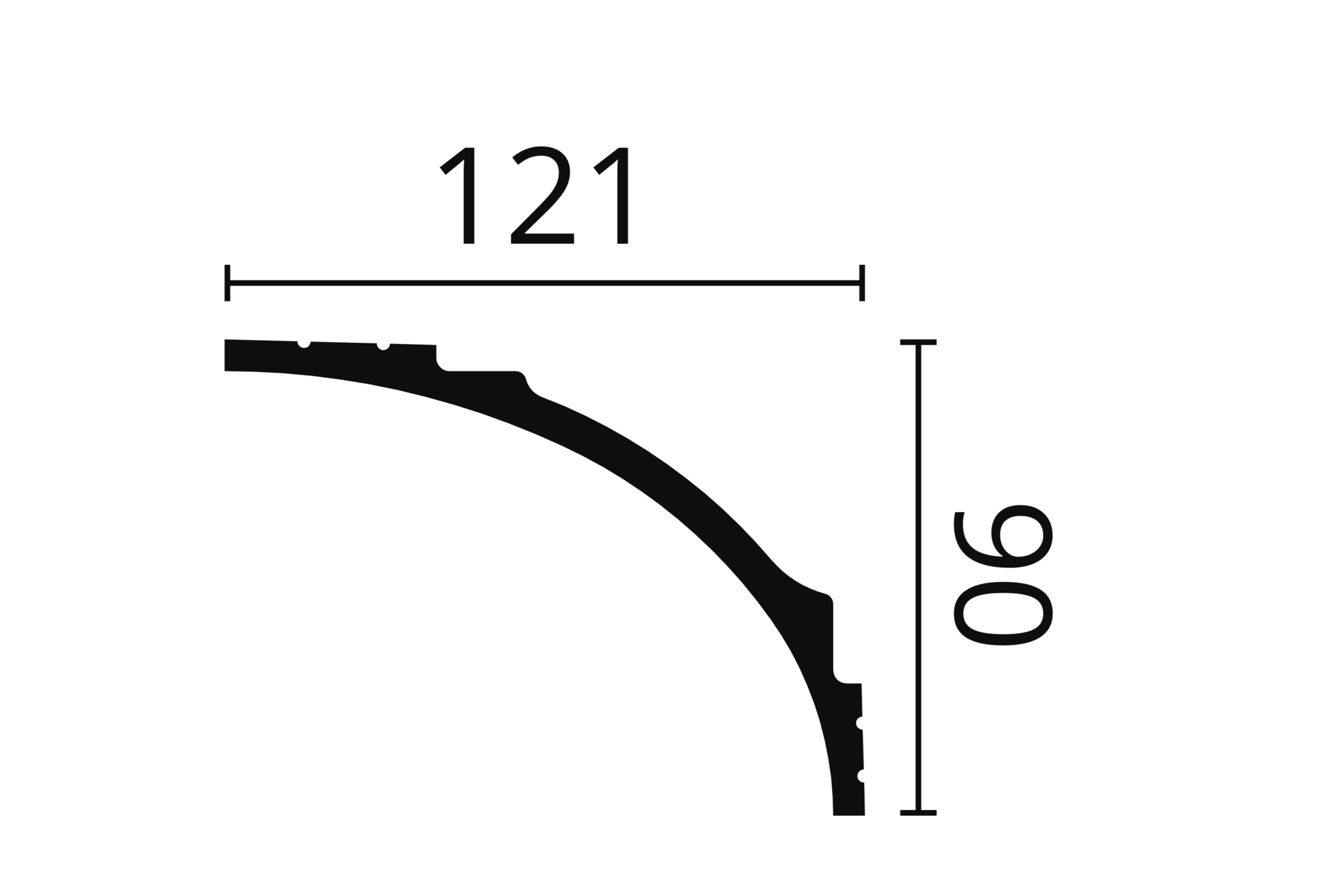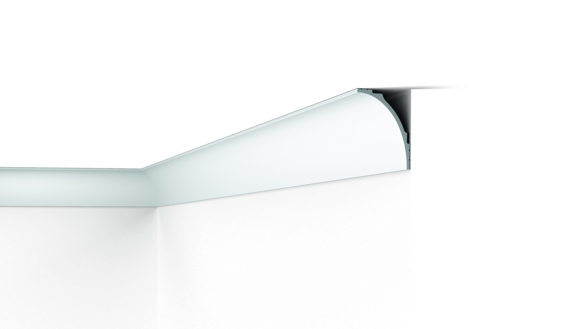 Dekoracyjna listwa przysufitowa przeznaczona do zastosowania jako element montażu lub ukierunkowania oświetlenia LED. Tył listwy posiada powłokę zabezpieczającą przed przenikaniem światła. Model ten sprawdzi się również jako maskownica szyny karniszowej.