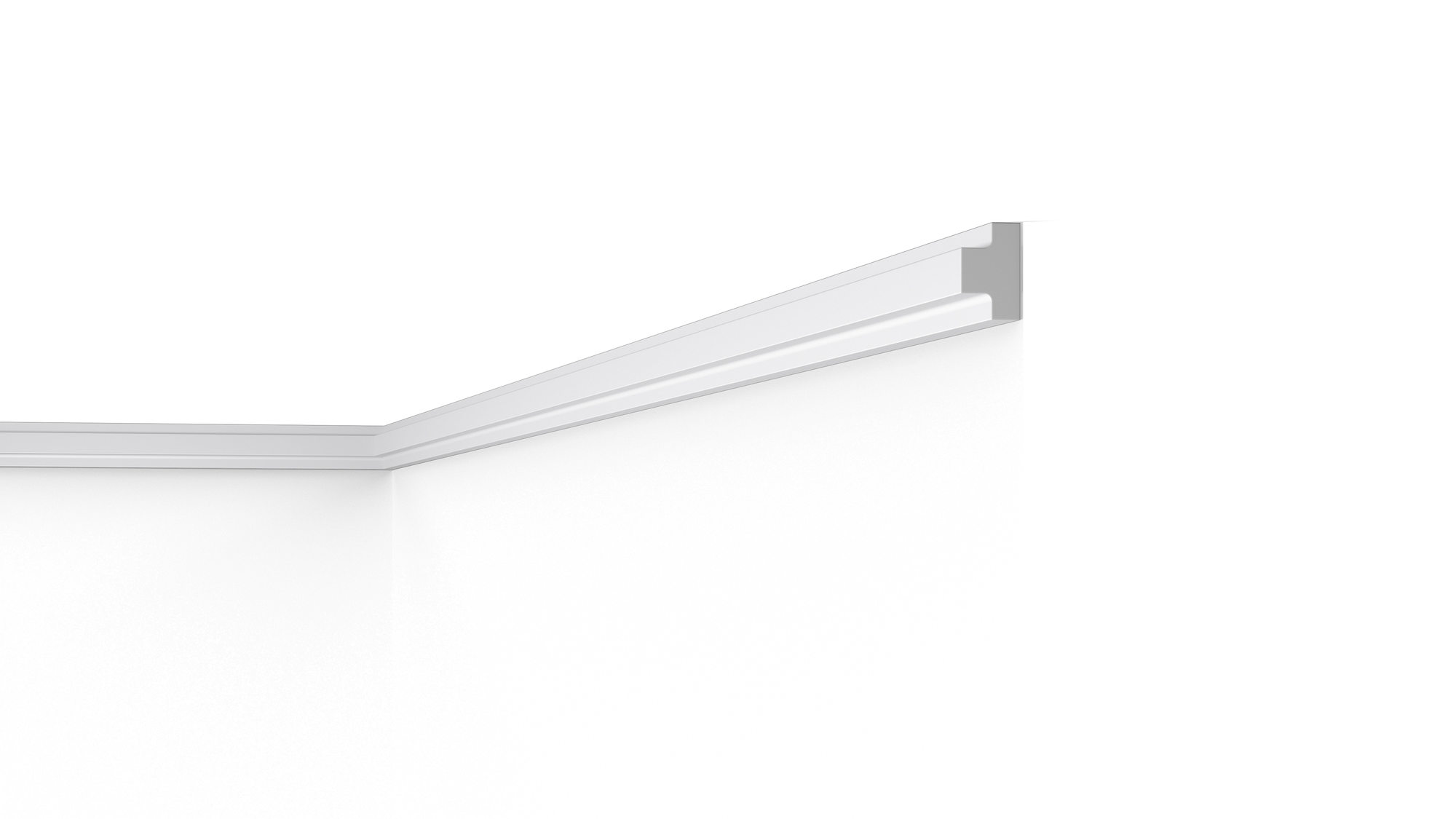 Miękki, minimalistyczny gzyms o idealnie gładkiej powierzchni pozwoli, niewielkim nakładem środków, ukryć drobne niedoskonałości na styku ściany i sufitu.