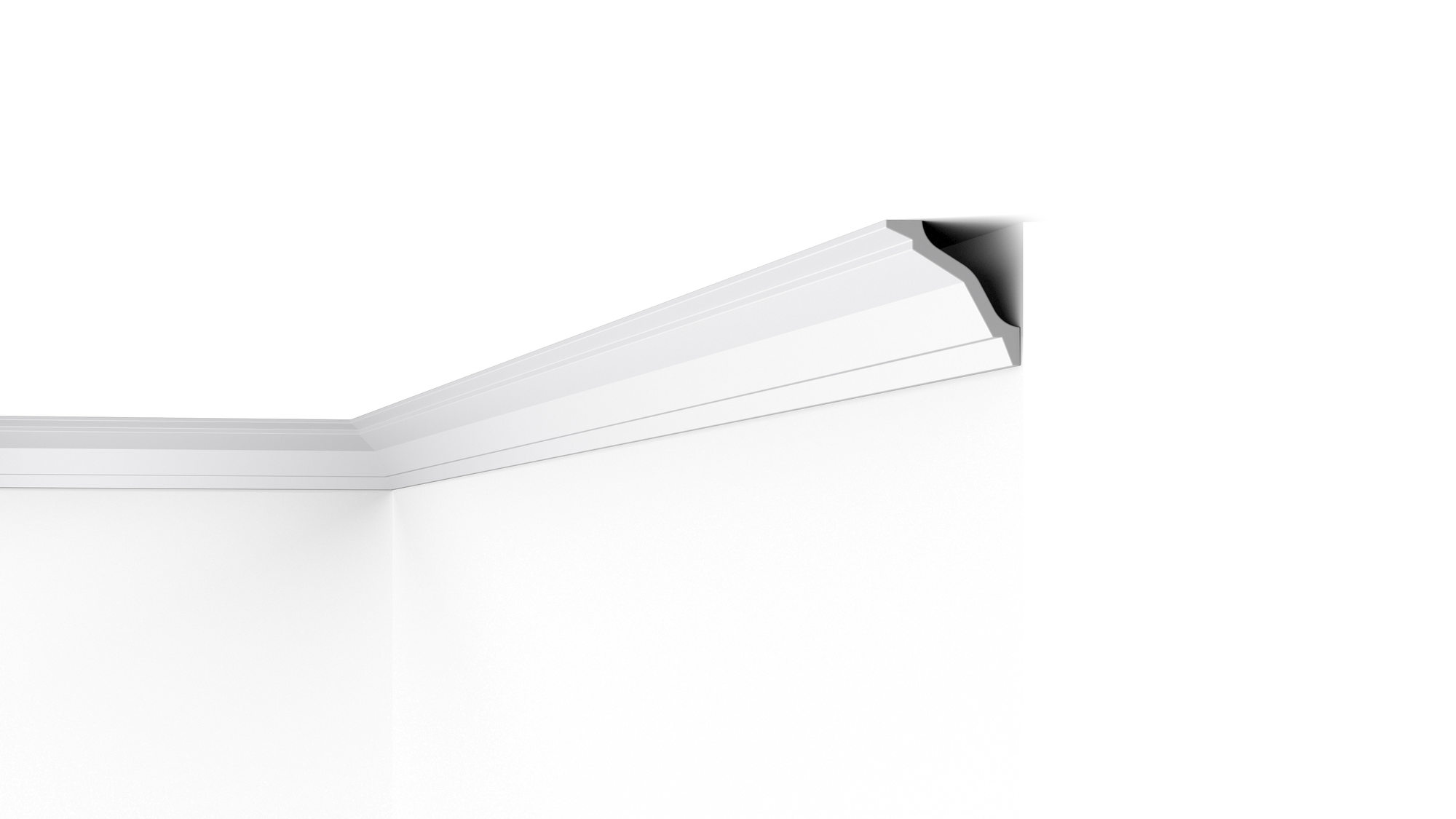 Trwała, dekoracyjna listwa przysufitowa pozwalająca efektownie wykończyć każde wnętrze, zarówno klasyczne jak i nowoczesne, maskując nierówności na styku ściany i sufitu.