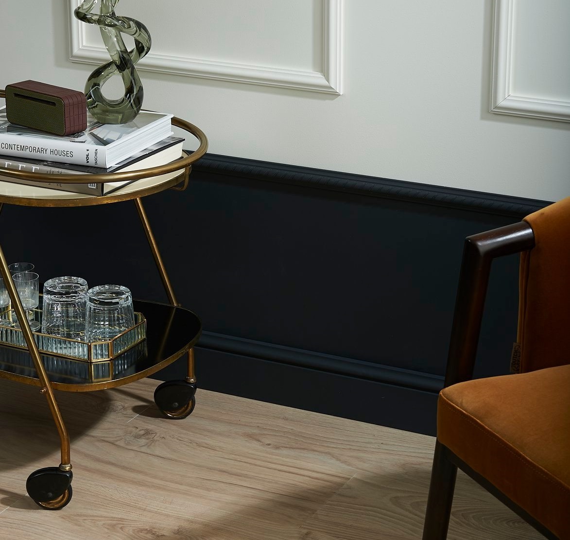 Stworzenie efektu lamperii za pomocą listwy przypodłogowej i ściennej to doskonały sposób na dodanie uroku i elegancji do wnętrza. Takie proste połączenie dwóch rodzajów listew może całkowicie odmienić charakter wnętrza. Poniżej zastosowana została listwa przypodłogowa FL4 oraz listwa ścienna WL1.
