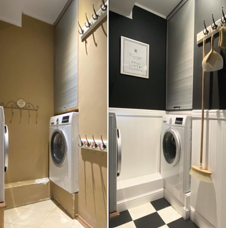 Wykonanie tej metamorfozy zajęło Beacie z "Pani to potrafi" dwa popołudnia. Jedno popołudnie upłynęło pod kątem porządkowania i malowania, a kolejne na docinaniu i przyklejaniu listew sztukateryjnych. Jestem oczarowaną tą zmianą, ponieważ udowadnia jak w bardzo prosty sposób - dobierając odpowiednie listwy i kolory, można całkowicie odmienić charakter wnętrza. W tym przypadku zostały zastosowane listwy przypodłogowe, jedna listwa ścienna dzieląca ścianę na pół, oraz panele ścienne zamontowane na dolnej części ściany. Wykonanie takiej lamperii z paneli ściennych to świetny sposób na ochronę ściany w miejscach, w których narażona jest na obicia czy odkształcenia.
