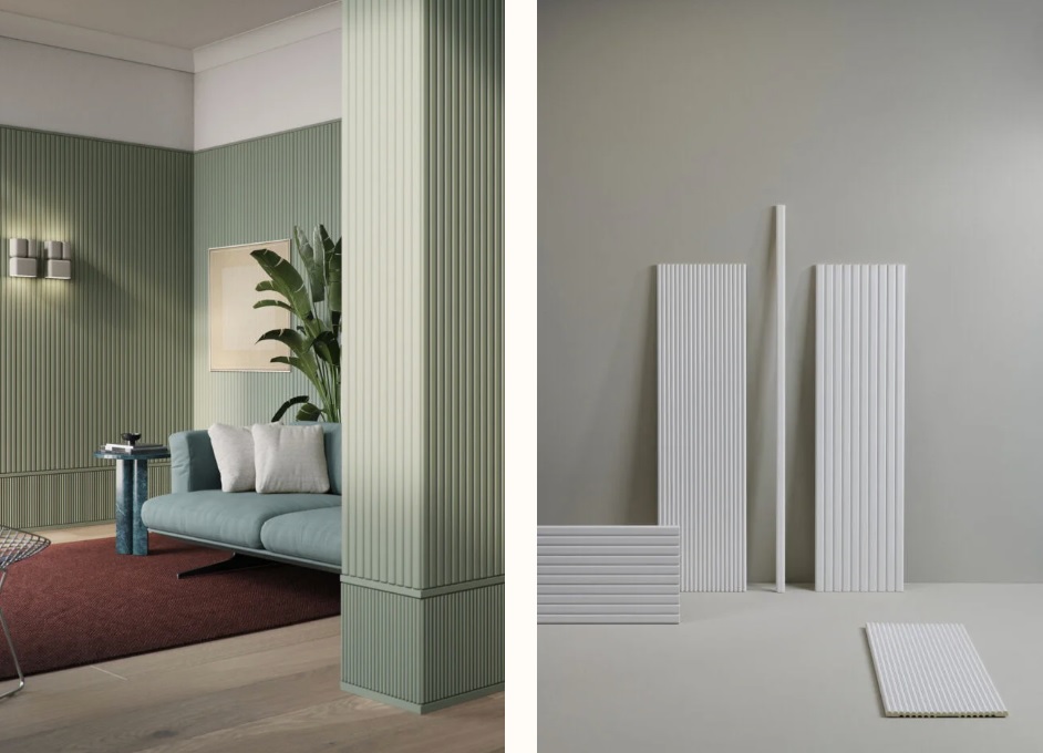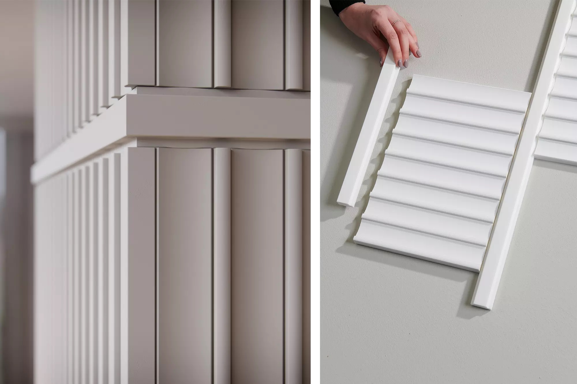 Canelé S i Canelé L to panele, które wprowadzają niepowtarzalny design do każdego pomieszczenia. Inspirują się stylem modernistycznym, co sprawia, że nadają się doskonale zarówno do nowoczesnych, jak i klasycznych wnętrz. Ich zakrzywione wzory stanowią hołd dla abstrakcji i prostoty, jednocześnie dodając głębi i trójwymiarowego efektu ścianie.