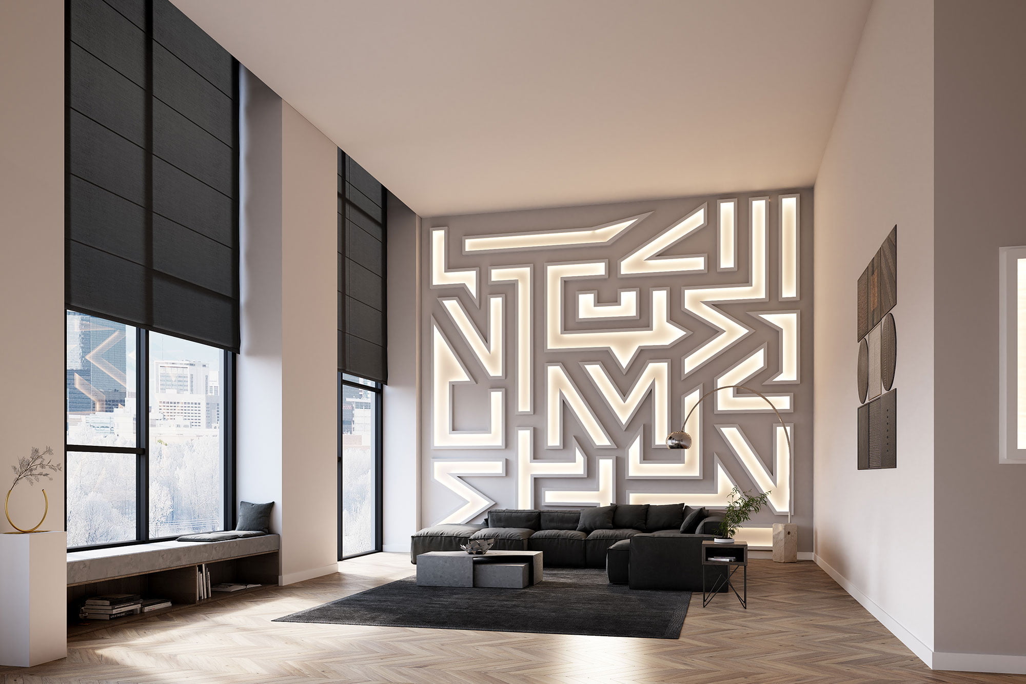 Geometria we wnętrzach to trend silnie utrzymujący się od kilku sezonów. W 2022 obserwujemy silny zwrot w stronę sztuki 3D, która wyrażać się może w wielu różnorodnych elementach - od architektury całego wnętrza, po detale jego wykończenia. Jest to idealny sposób, aby w płaskie ściany, dosłownie, tchnąć trochę życia, dodać głębi powierzchniom i uzyskać artystyczny, plastyczny efekt we wnętrzu. Panele 3d lub listwy sprawdzą sie tu doskonale, ponieważ mogą ozdobić nie tylko ściany i sufity, ale również meble, nadając nowoczesnym wnętrzom futurystyczny charakter i wzbogacając pomieszczenia o niezwykle stylowe wzory. Tutaj ograniczeniem jest tylko wyobraźnia. Poniżej garść pomysłów.