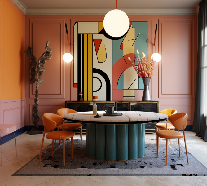 Neo-retro to styl, który ponownie docenia elementy wzornictwa inspirowane trendami z drugiej połowy XX wieku, szczególnie z lat 50. i 80. XX wieku. Estetyka retro została jednak nieco w tej wersji odświeżona, aby dodać wnętrzom nowoczesnego sznytu. I tak, odważne ulepszenia retro powróciły do wnętrz w postaci żywych kolorów, geometrycznych wzorów, nowych kształtów, mebli w stylu vintage. Idealny styl dla koneserów estetyki przeszłości. Poniżej 2 pomysły na wykorzystanie sztukaterii do stworzenia dekoracji ściany we wnętrzach urządzonych w stylu neo retro.