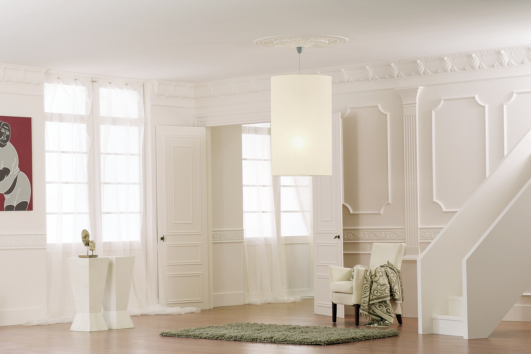 Innym, bardziej klasycznym rozwiązaniem, które sprawdzi się tu doskonale, będzie zastosowanie białych klasycznych listew róznej szerokości i ozdobienie nimi białych ścian. Poniżej użyty model: FD15S + SP3 + Z12+ Z7 + rozeta R25 + głowica PC2 + narożnik SP3-4.