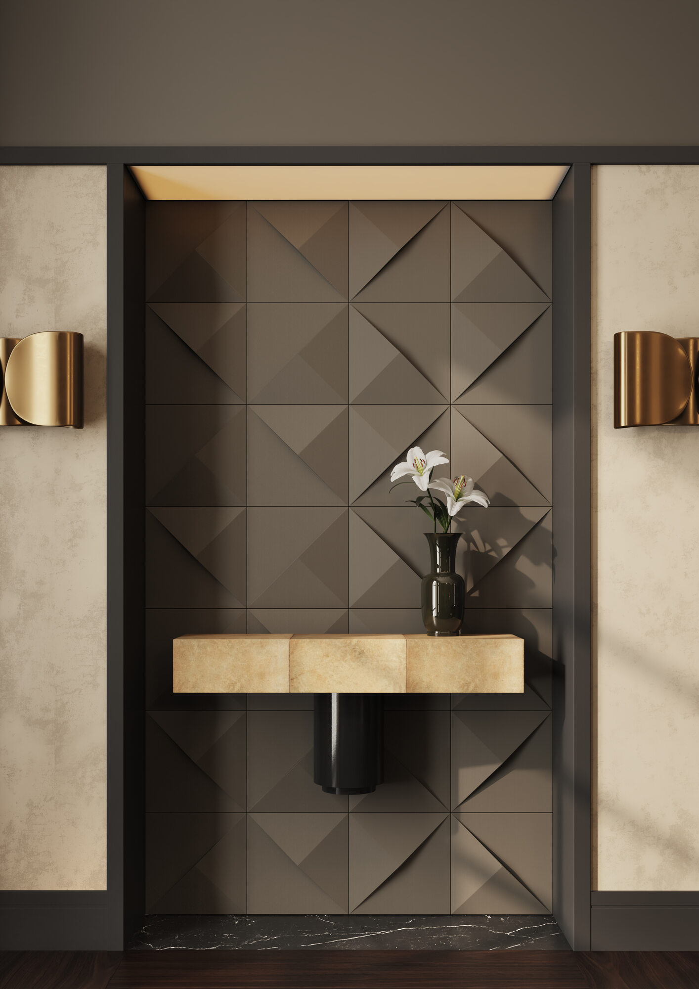 Panel ścienny o geometrycznym kształcie poszerza możliwości zabawy z formą, a tym samym pozwala na tworzenie oryginalnych wzorów. Może być zastosowany samodzielnie lub w połączeniu z elementem ściennym CURVE. PUZZLE daje mozliwość wprowadzenia graficznego i współczesnego akcentu do każdego wnętrza.
