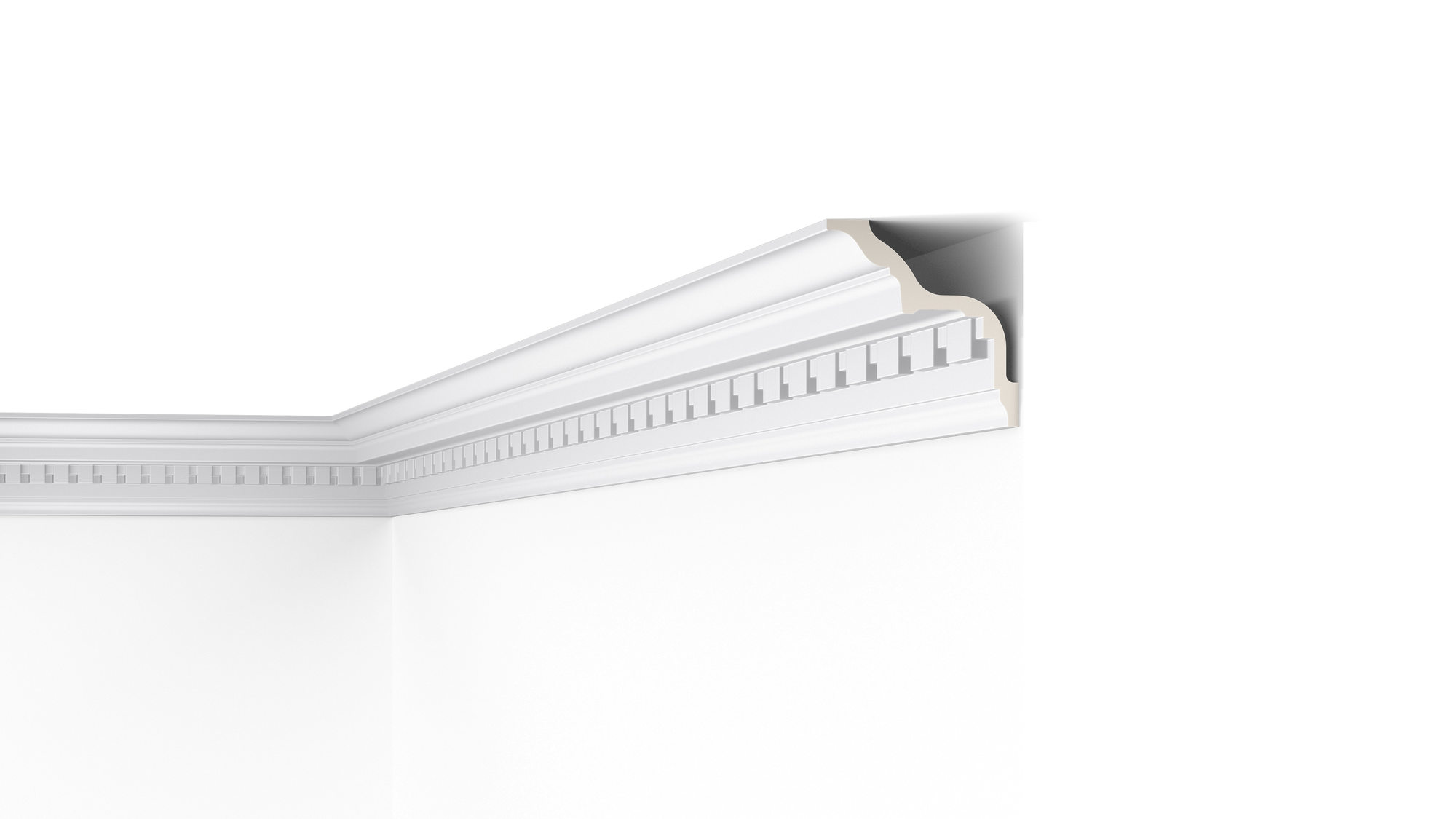 Dekoracyjna, bogato zdobiona listwa przysufitowa wykonana z wysokiej jakości materiału pozwoli dodać elegancji i charakteru zarówno klasycznym jak i nowoczesnym wnętrzom. Wykonana z dbałością o szczegóły, niezwykle łatwa w montażu pomoże ukryć drobne niedoskonałości na styku ścian i sufitu.